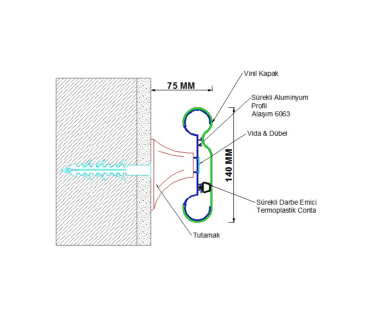 | Drenaj levhaları su yalıtımının bittiği subasman kotunda yalıtım baskı profili ile duvara tespit edilir. |